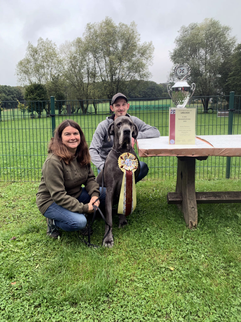 Gräfin Lotta von der Bocksleite hat mit Britta Tiemann die 9.Siegerprüfung 2022 für sich entscheiden können . ?DDC-Leistungssieger Fährtenarbeit ?’Älteste Deutsche Dogge mit bestandener Prüfung ?mit einer Fährtenprüfung der Stufe 3 ? Britta konnte somit den Wanderpokal mit großer freude in Empfang nehmen.